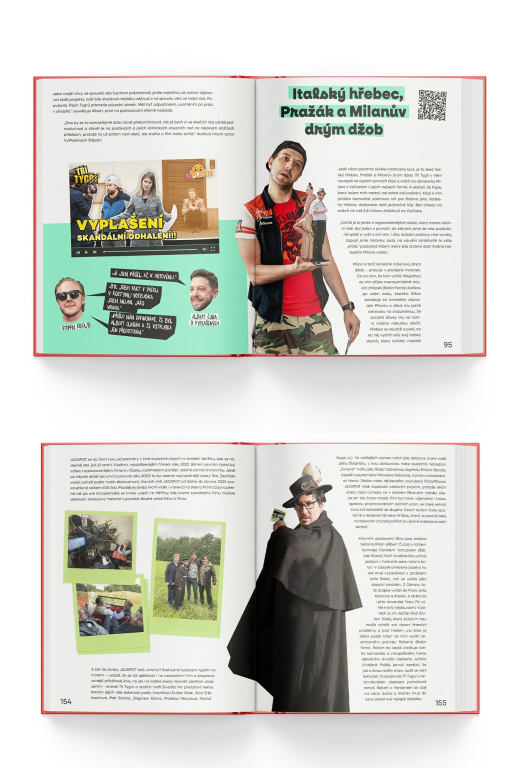 Zajímá tě zákulisí našich legendárních scének? Chceš vědět, jak se zrodily kultovní postavy jako je Milan, Lumír, Mojmír, Vavarovi, Votrubek, Voliver a další? Vydej se s tímhle hustopřísným papírovým skvostem na epickou a nostalgickou výpravu po stopách Tygrů – od improvizačních začátků v Heligonce přes skeče a livestreamy na YouTube, natočení celovečeráku JACKPOT, až po současnost.